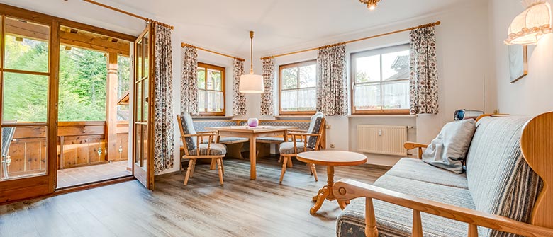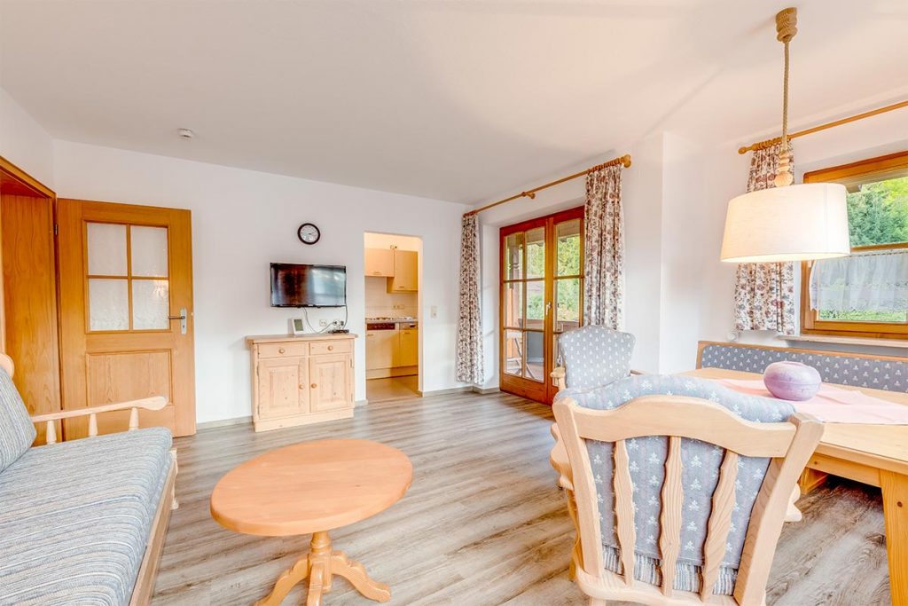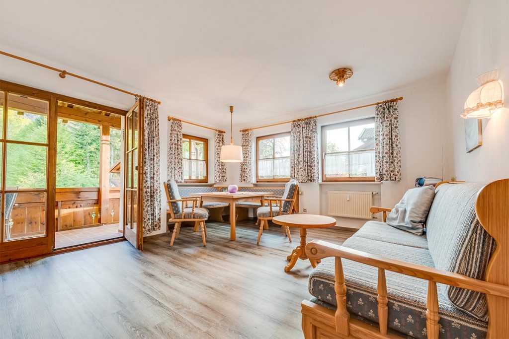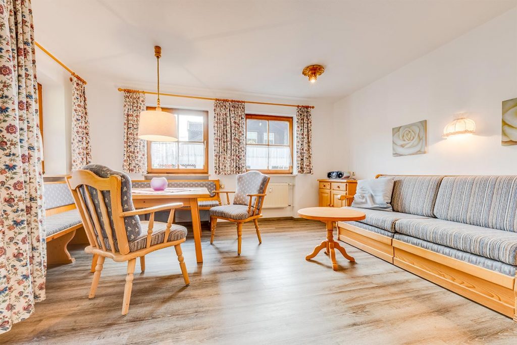 • südseitiges Wohnzimmer mit eingebauter Sitzecke und ausziehbarer Doppelcouch,